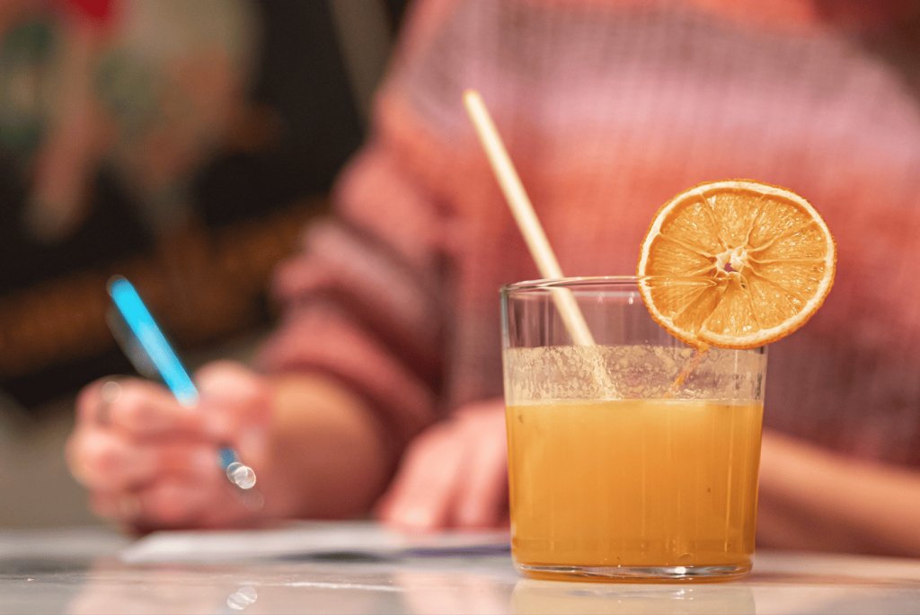 Un cocktail fruité avec du fruit de la passion, du caramel et des rondelles d’oranges et citrons séchées, un mélange rafraichissant !
